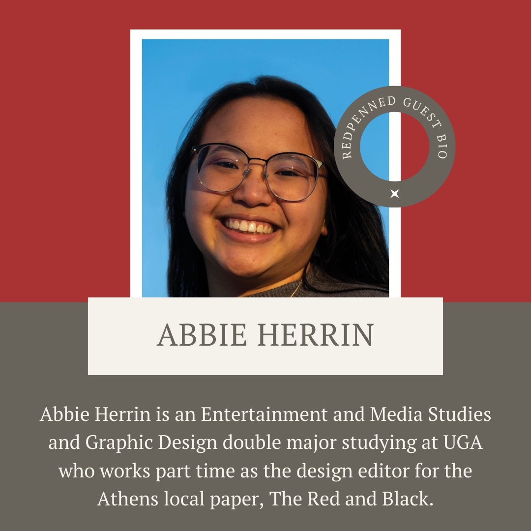 Abby Herrin is an Entertainment and Media Studies and Graphics Design double major studying at UGA who works part time as the design editor for the Athens local paper, The Red and Black.